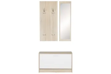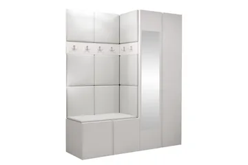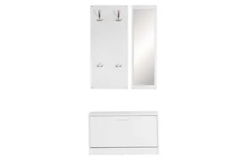Eteinen Wohnling Seinälle kiinnitettävä naulakko peilillä, kenkähylly, lastulevy, moderni Valkoinen
