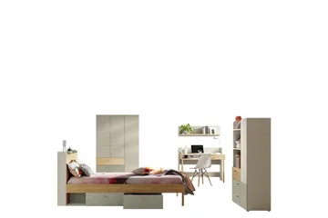 Sänky ja yöpöytä 2-ovinen vaatekaappi Pöytä Kirjahylly Vetolaatikko Erik