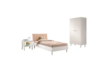 Sänky yöpöydällä Vaatekaappi Amori Valkoinen 3-ovinen