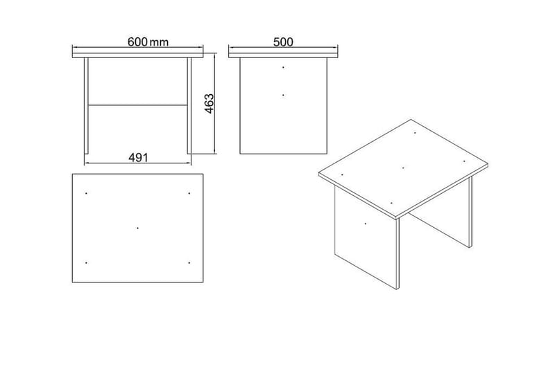 Sohvapöytä on myös suorakulmainen ja sen mitat ovat 60 cm leveys, 46.3 cm korkeus ja 50 cm syvyys.