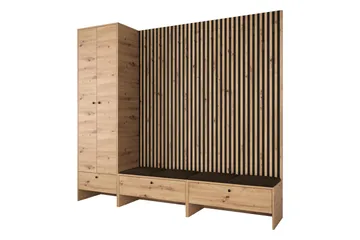 Sänky sälepohjalla, laatikolla, yöpöydällä ja 2-ovinen vaatekaappi Alex