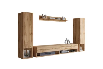 TV-kalustepaketeilla on paljon hyviä puolia. Olohuoneen sisustus saattaa tuntua sekavalta, jos erilaisia säilytyskalusteita on paljon. Kalustepaketilla saat tilaan paljon säilytystilaa, mutta samalla tilan ilme säilyy yhtenäisenä ja tyylikkäänä, kun eriparisia huonekaluja ei ole. Valikoimassamme on tv-kalustepaketteja, joissa on joko avointa tai suljettua säilytystilaa, tai vaikka molempia. Voit siis laittaa esille niitä esineitä, joita haluat ja muut voit laittaa laatikoihin tai ovien taakse piiloon.