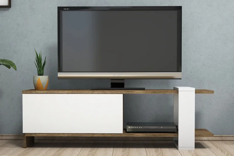 TV-taso Tyrsberget 120 cm on ajaton ja tyylikäs huonekalu, joka sopii täydellisesti televisiollesi ja muille mediakomponenteillesi. Tämä TV-taso on valmistettu kestävästä melamiinista ja siinä on yksi ovi sekä yksi hyllytaso, joten sinulla on tarpeeksi tilaa säilyttää laitteitasi ja muita tarvikkeita.