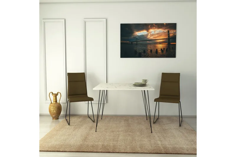 Pöytä Alaxander 90 cm on tyylikäs ja käytännöllinen apupöytä, joka sopii täydellisesti sisustukseen. Sen moderni muotoilu ja musta metallijalka tuovat ripauksen eleganssia mihin tahansa tilaan.