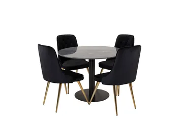 Ruokailuryhmä Dipp 115 cm Pyöreä 4 Velvet Tuolia