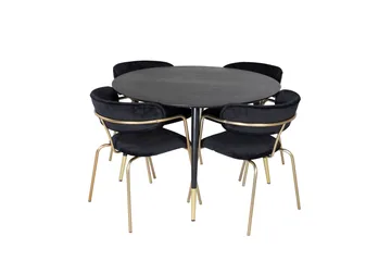 Ruokailuryhmä Dipp 115 cm Pyöreä 4 Velvet Tuolia