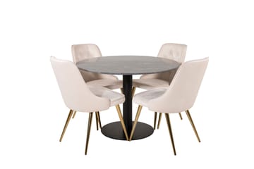 Ruokailuryhmä Estelle 106 cm Pyöreä 4 Velvet Tuolia