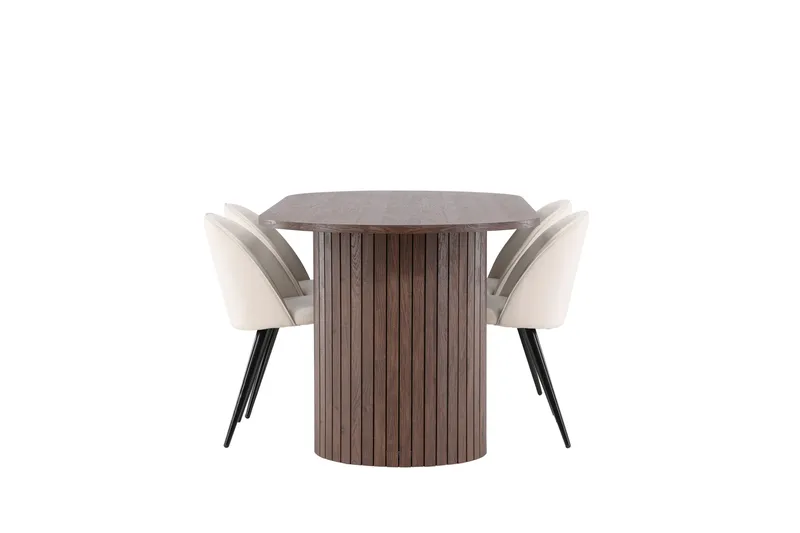 Venture Home Härön Ruokailuryhmä 200 cm Soikea jossa 4 Velvet tuolia Mokka/Beige