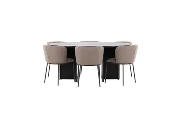 Ruokaryhmä Strada Pyöreä 120/170 cm Musta Edina-tuoleilla 6 kpl, Musta / Ruskea