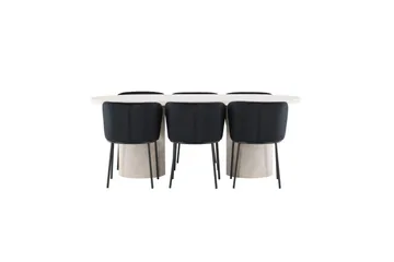 Ruokaryhmä Narvik 100x200 cm Beige 6 Edina-tuolilla Musta