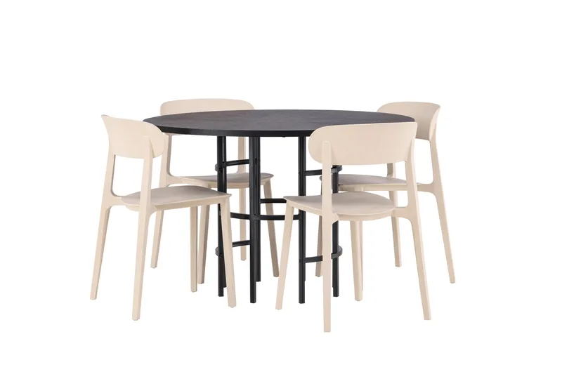 Venture Home Ruokailuryhmä Copenhagen 115 cm Pyöreä 4 Åstol Tuolia Beige
