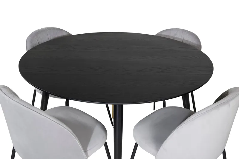 Venture Home Ruokailuryhmä Dipp 115 cm Pyöreä 4 Wrinkles Tuolia Musta/Kulta
