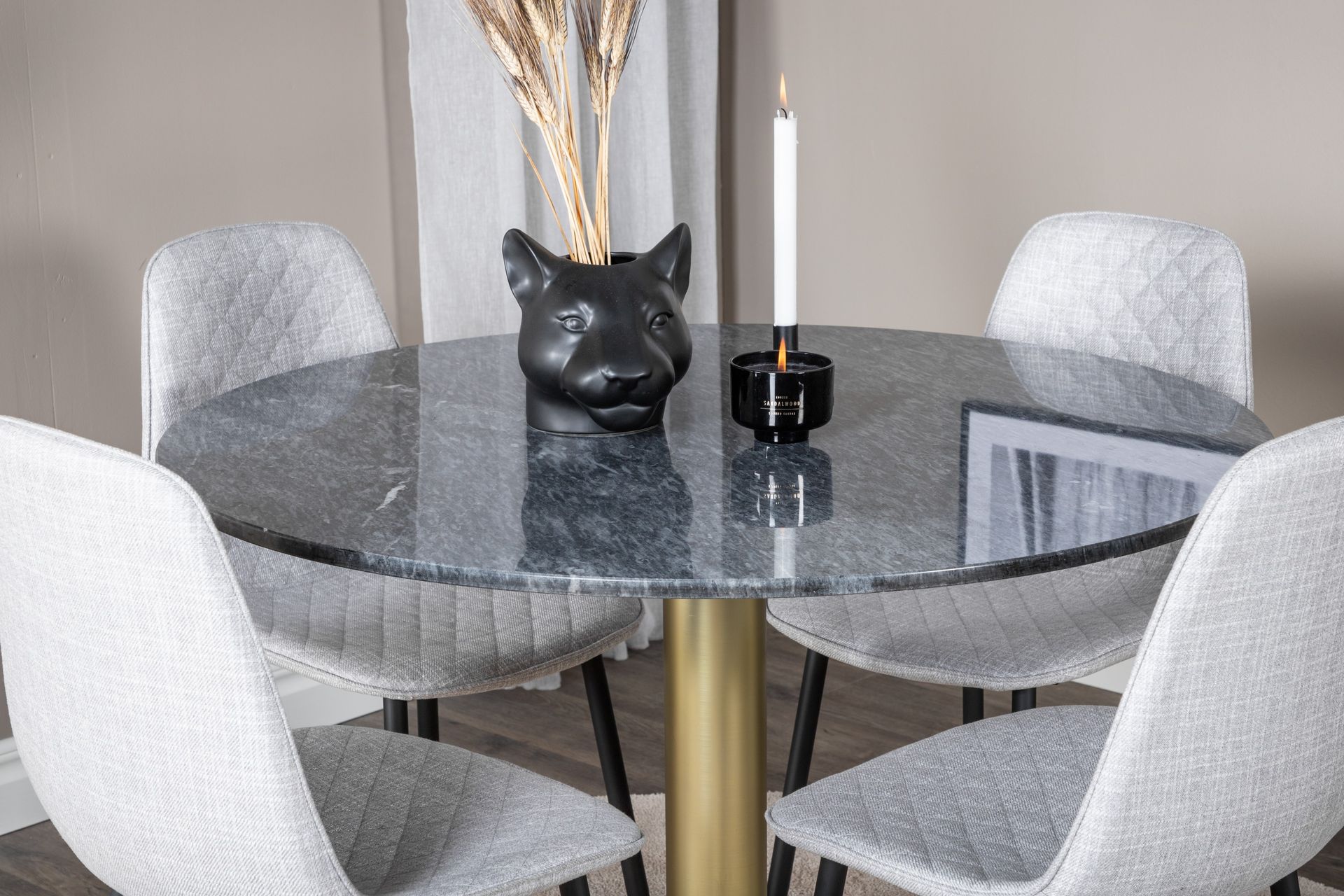 Venture Home Ruokailuryhmä Estelle 106 cm Pyöreä 4 Polar Tuolia Musta/Kulta