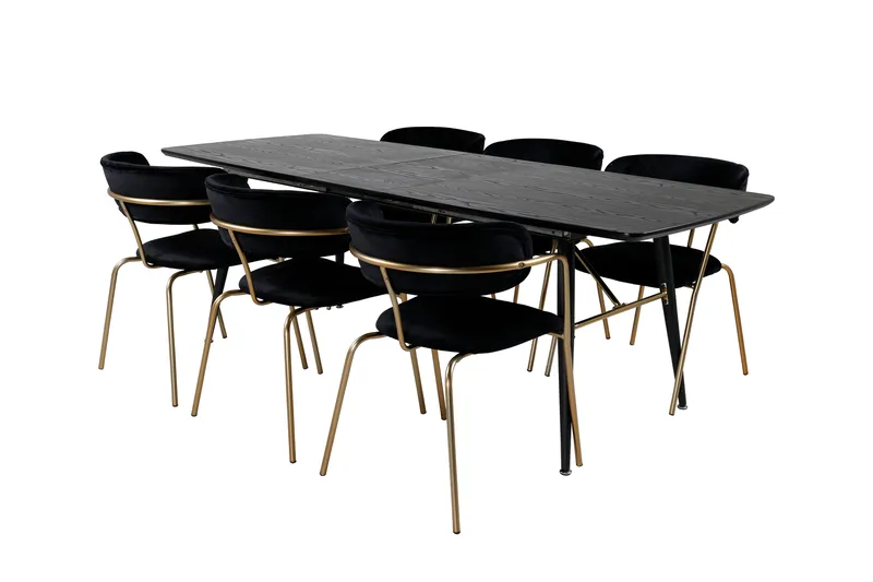 Venture Home Ruokailuryhmä Gold Jatkettava 180-220 cm Suorakulmainen 6 Arrow Tuolia Musta/Kulta