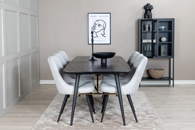 Venture Home Ruokailuryhmä Gold Jatkettava 180-220 cm Suorakulmainen 6 Velvet Tuolia Musta/Kulta