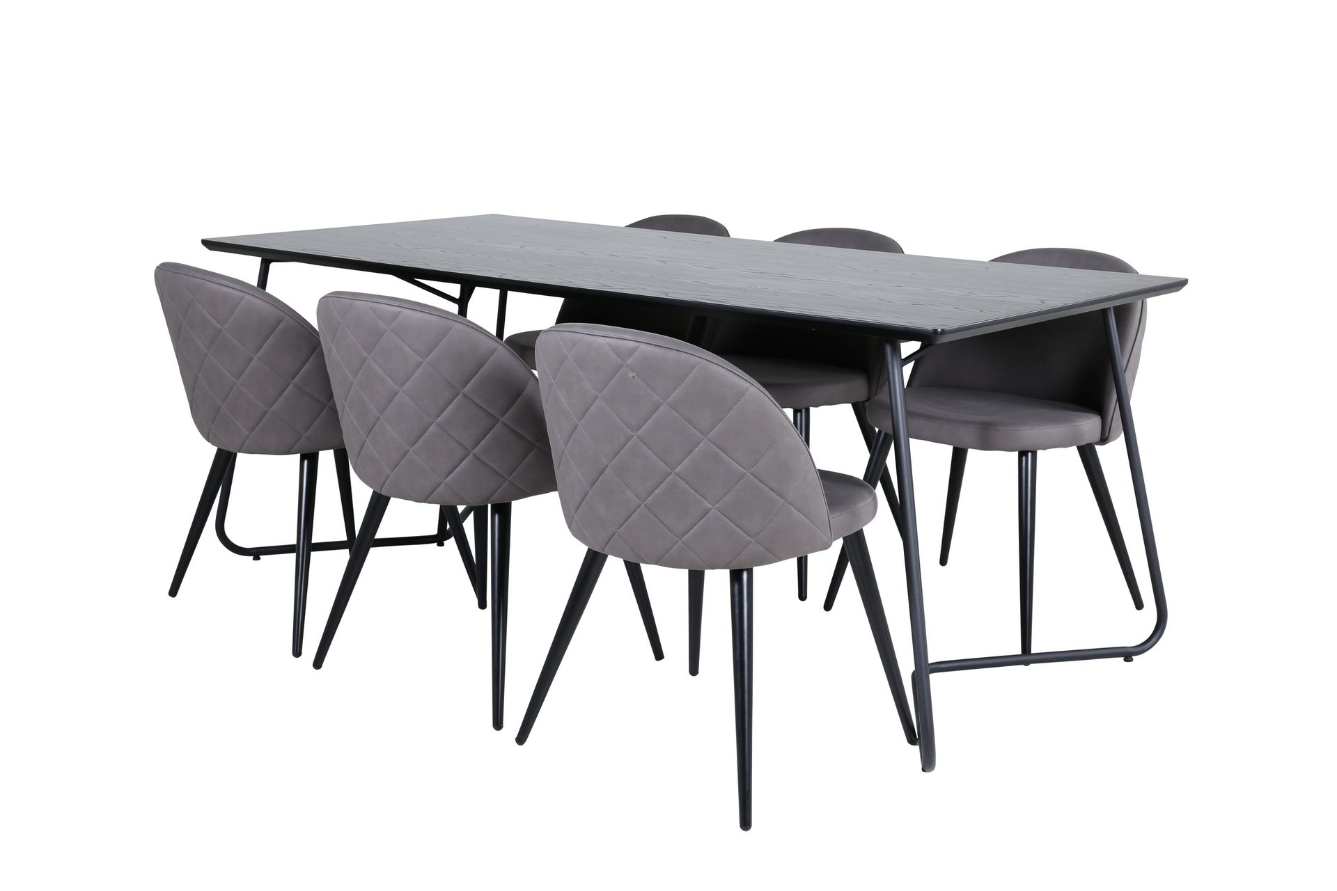 Venture Home Ruokailuryhmä Petra 190 cm Suorakulmainen 6 Velvet Tuolia Musta