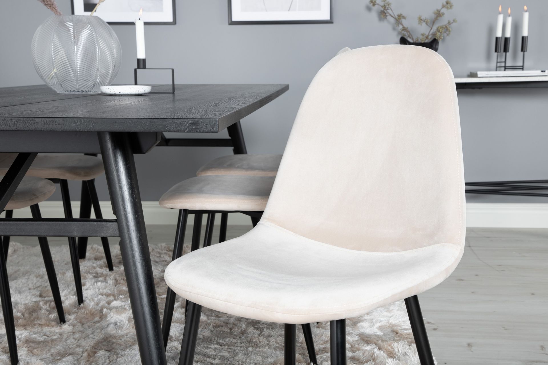 Suorakulmainen muoto ja musta väri tekevät tästä ruokailuryhmästä ajattoman ja helposti yhdisteltävän muihin huonekaluihin ja sisustukseen. Voit olla varma, että tämä ruokailuryhmä sopii täydellisesti kotisi tyyliin.