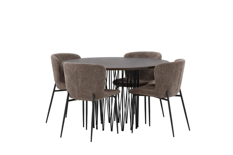 Venture Home Ruokailuryhmä Stone 120 cm Pyöreä 4 Modesto Tuolia Beige