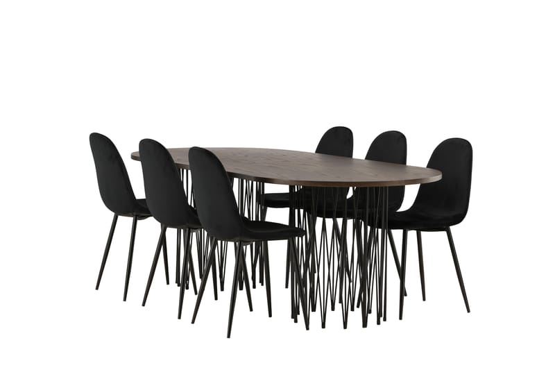 Venture Home Ruokailuryhmä Stone 220 cm Soikea 6 Polar Tuolia Musta