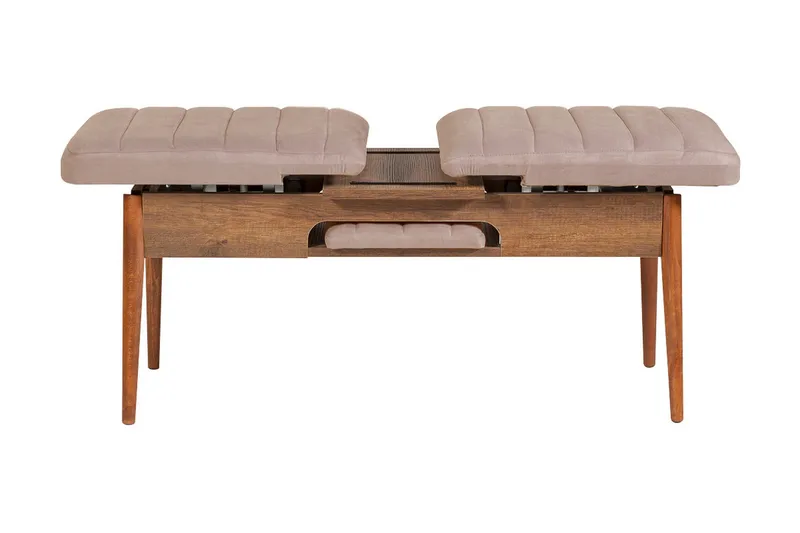 Yksi tämän ruokailuryhmän parhaista ominaisuuksista on sen jatkettavuus. Mukana tulevan klaffin ansiosta voit helposti pidentää pöytää tarpeen mukaan. Jatkettuna pöydän pituus on 163 cm, joten se tarjoaa runsaasti tilaa isommallekin seurueelle.