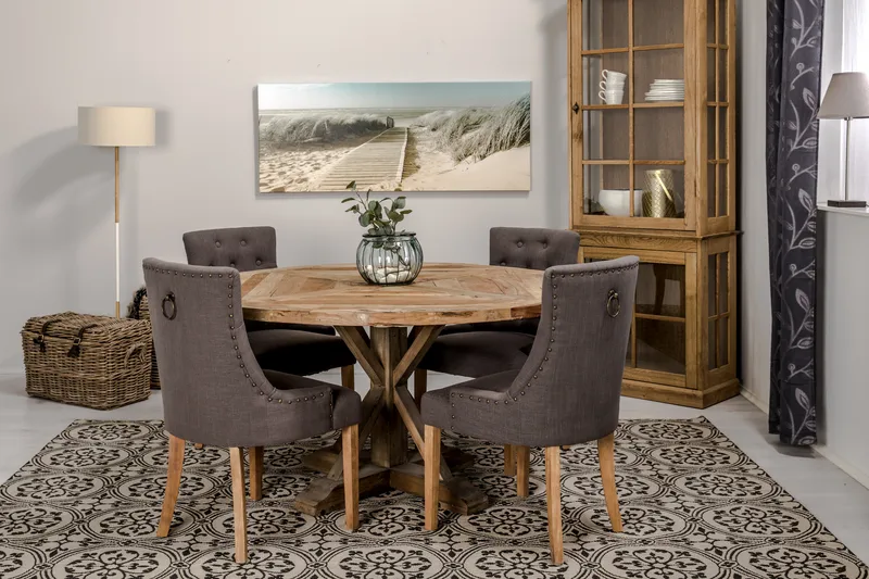 Bloomington Ruokailuryhmä Yorkshire 150 cm Pyöreä 4 Ophelia tuolia Vintage Jalava/Harmaa