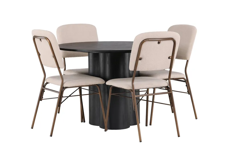 Venture Home Ruokaryhmä Olivia 110 cm Pyöreä 4 Seda-tuolilla Beige