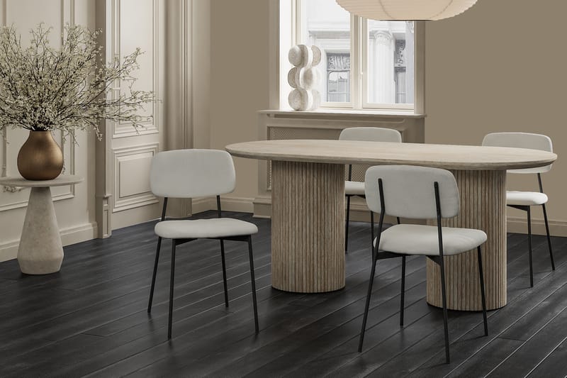 Andrarum Uppveda Ruokailuryhmä 180 cm Soikea Travertiini 4 Lowe Ruokatuolilla Travertin
