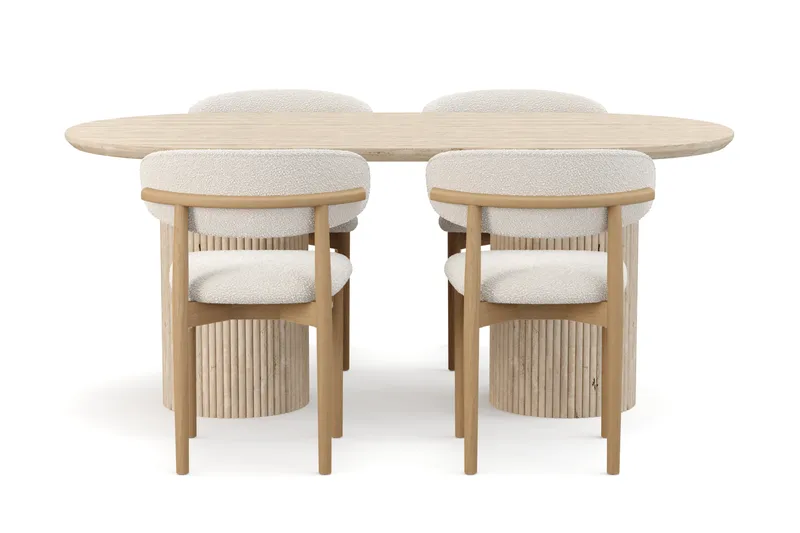 Andrarum Uppveda Ruokapöytä travertiinin näköinen 4 Jaiveer ruokatuolilla Beige