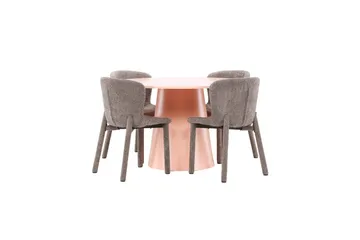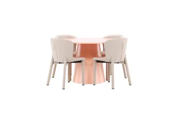 Ruokaryhmä Lanzo Pyöreä 120 cm Vaaleanpunainen neljällä Astoria-tuolilla Beige