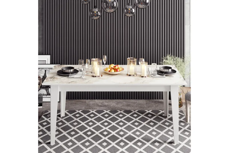 Christopher-ruokapöydän valkoinen väri antaa sille raikkaan ja modernin ilmeen, joka sopii hyvin erilaisiin sisustustyyleihin. Sen leveys on 90 cm ja pituus 180 cm, joten se tarjoaa runsaasti tilaa ruokailuun ja yhdessäoloon. Pöydän korkeus on 77 cm, mikä tekee siitä mukavan korkeuden istumiseen.