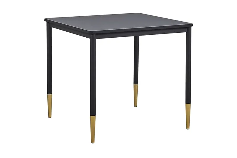 Tyylikäs ruokapöytä metallijaloilla. Kompaktin kokoinen moderni ruokapöytä on täydellinen lisä pienempiin ruokailutiloihin tai keittiöihin. Se sopii loistavasti pariskunnille tai pienille, nelihenkisille perheille. Helposti puhdistettavasta MDF-levystä valmistettua pöytälevyä korostavat metalliset jalat. Minimalistinen runko ja klassisen mustan sekä kullanväristen yksityiskohtien yhdistelmä saavat pöydän sopimaan eklektisiin tai glamour-tyylisiin sisustuksiin.