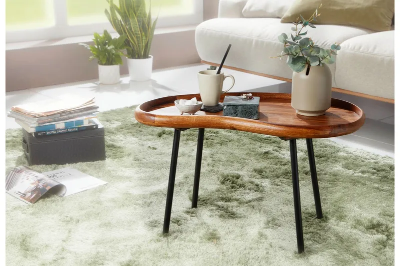 Sohvapöytä Matozzo on valmistettu massiivisesta puusta, mikä tekee siitä kestävän ja pitkäikäisen. Sen vankat metallijalat takaavat tukevan ja vakaa seisomisen. Pöydän leveä 71 cm:n leveys tarjoaa runsaasti tilaa asetella lehtiä, kahvikuppeja ja muita tarvikkeita.