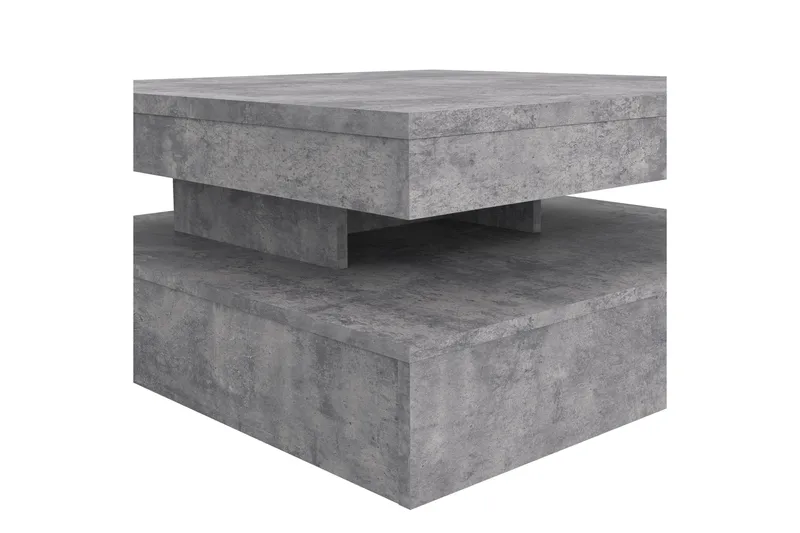 Sohvapöytä on valmistettu laadukkaasta lastulevystä, mikä tekee siitä kestävän ja pitkäikäisen. Sen neliön muotoinen pöytälevy on 2.2 cm paksu ja se tarjoaa runsaasti tilaa asetella koriste-esineitä, juomia tai kirjoja. Pöydän vaaleanharmaa väri ja puun ulkonäkö tuovat lämpöä ja tyylikkyyttä huoneeseen.