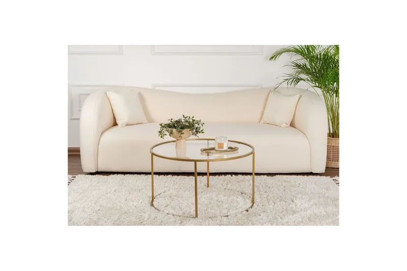 Lisää olohuoneeseesi hienostuneisuutta tällä ylellisellä sohvapöydällä. Kulta ja läpinäkyvät värit luovat tyylikkään ja modernin ilmeen, joka tekee vaikutuksen vieraisiisi ja toimii näyttävänä osana kotiasi.
