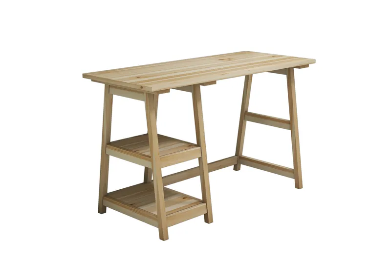 Kirjoituspöytä Fatimah 120 cm Säilytyksellä 2 hyllyä vaatii kokoamisen, mutta se on helppo tehtävä seurata mukana toimitettavia ohjeita. Pöydän jalat on valmistettu furusta, mikä tekee niistä vahvat ja kestävät.