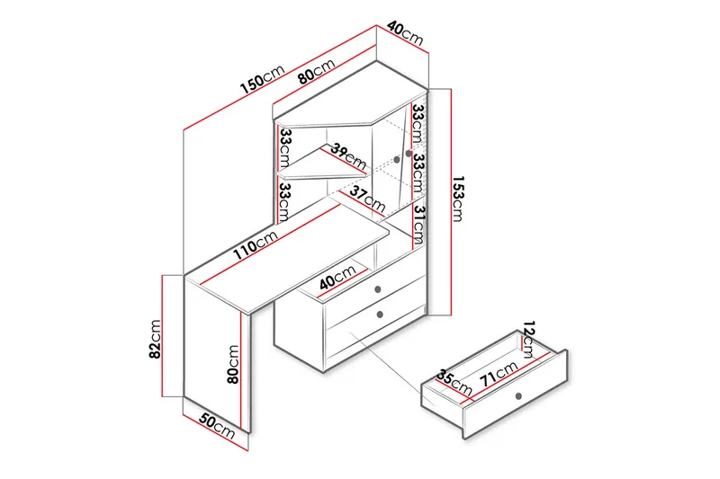 Kirjoituspöytä Staton 150 cm Luonnonväri/Valkoinen