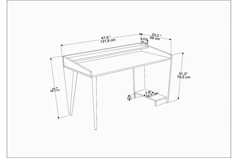- Pöydän lyhyen sivun jalkojen etäisyys toisistaan: 54 cm