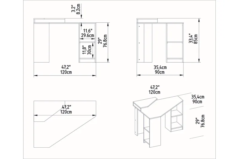 - Korkeus pöytälevyyn: 74.8 cm
