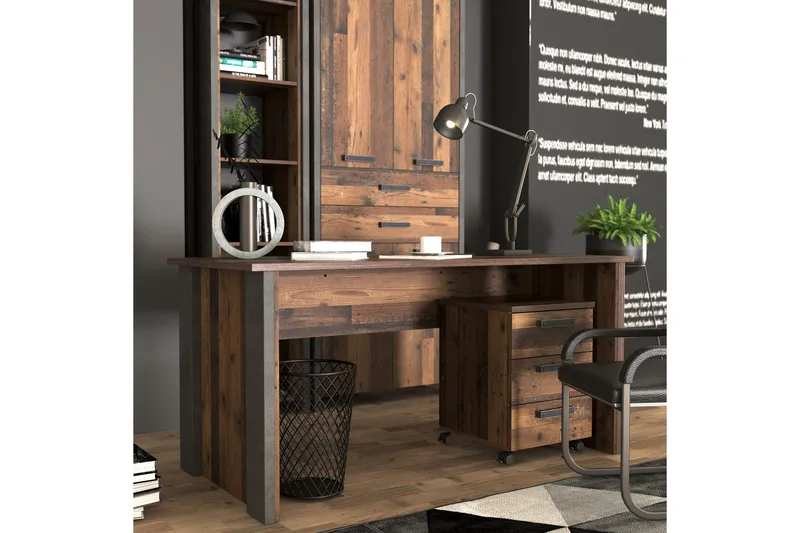 Haluatko luoda tehokkaan työtilan modernilla tyylillä? Työpöytä Trevorton 153 cm on täydellinen valinta sinulle. Tämä työpöytä kuuluu CLIF-sarjaan ja se on viimeistelty Old Wood Vintage ja Concrete Optic Dark Grey -koristeilla, jotka tuovat modernin ja teollisen ilmeen tilaan.