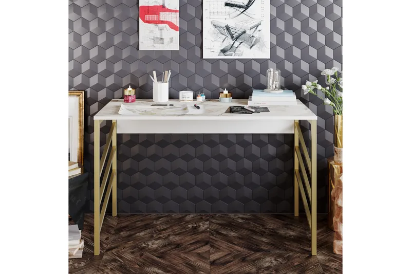 Tuo tyylikkyyttä ja toimivuutta työtilaasi Kirjoituspöydällä Mesjö 120 cm - Kulta!
