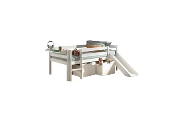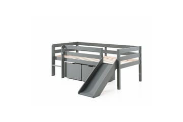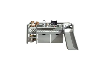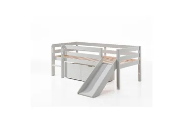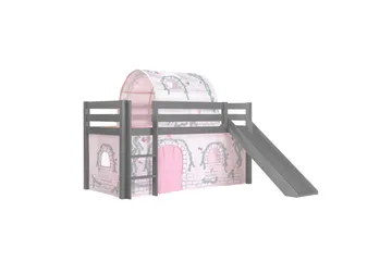 Keskikorkea sänky tikkailla ja riippuvalla hyllyllä Pino Harmaa, Liukumäellä