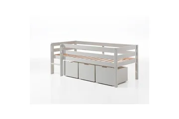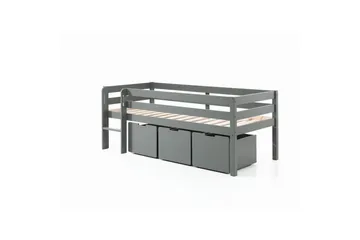 Keskikorkea sänky tikkailla ja laatikoilla Pino Harmaa, 3 kappaleen sarja, Ilman ripustettavaa hyllyä