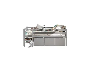 Keskikorkea sänky tikkailla ja laatikoilla Pino Harmaa, 2 kappaleen sarja, Ilman ripustettavaa hyllyä