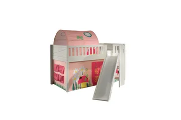 Parvisänky liukumäellä ja yhteensopiva tekstiilisetti (leikkiverho, tunneli ja säilytystaskut) Scott Prinsessa