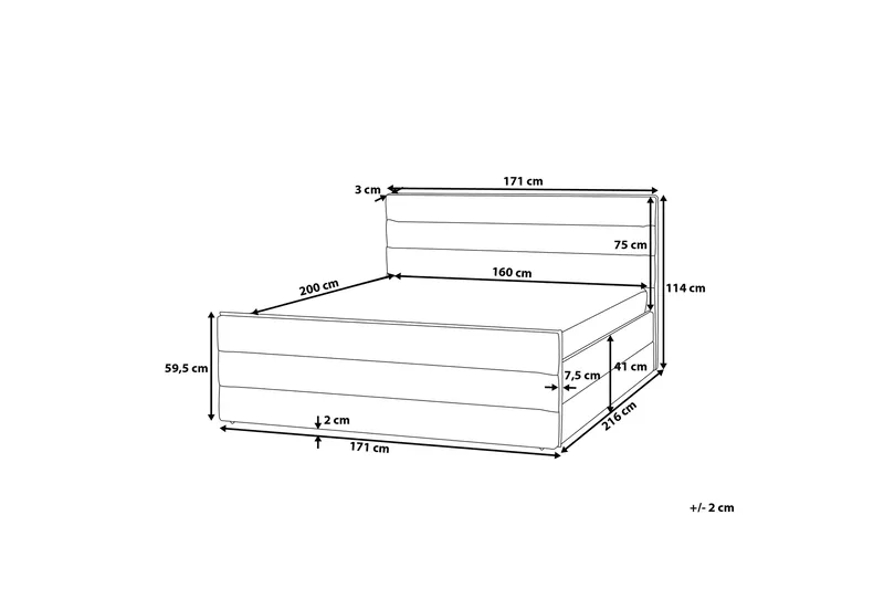 Tyylikäs verhoiltu parivuode. Anna makuuhuoneellesi täydellinen muodonmuutos ja nuku mukavasti tällä kauniilla sängyllä. Tämä luksussänky tarjoaa tyylikästä suunnittelua ja käytännöllisyyttä samassa paketissa. Elegantit ompeleet ja helppohoitoinen verhoilu tekevät sängystä upean modernin. Harmaa kangas sietää kulutusta, joten sänky säilyy kauniina pitkän aikaa.