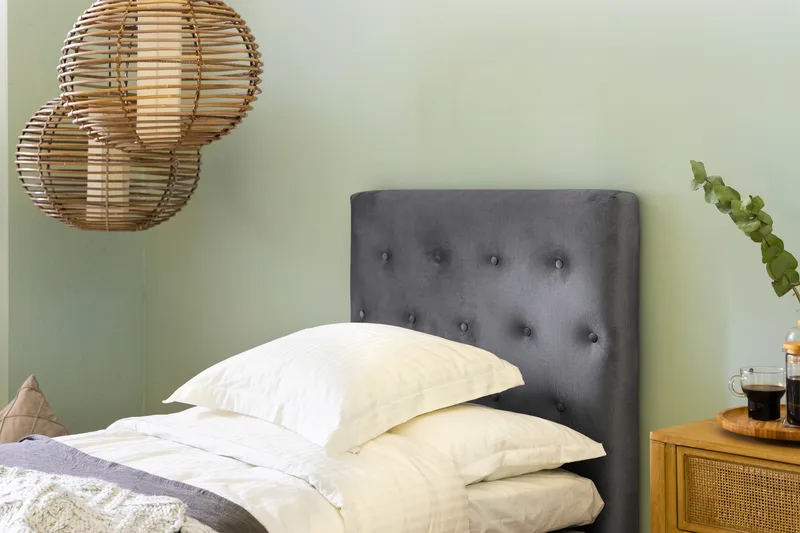 Mukavuus on myös otettu huomioon suunnittelussa. Sängynpääty Rebeca 90 cm Nappi tarjoaa ylimääräistä pehmeyttä ja tukea sängyssäsi. Voit rentoutua mukavasti selkänojaa vasten lukiessasi kirjaa tai katsellessasi televisiota. Lisäksi sängynpääty auttaa estämään tyynyjen ja peittojen putoamisen sängystä.
