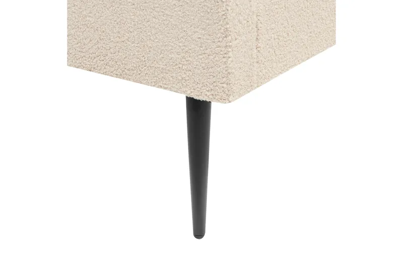Glamour-tyylinen verhoiltu parisänky. Kohota makuuhuoneesi sisustusta tällä elegantilla ja kutsuvalla parisängyllä, joka luo tilaan viihtyisän ja tyylikkään tunnelman. Sänky on verhoiltu nyppyisellä bukleekankaalla, joka tarjoaa pehmeän tuntuman ja lisää lämpöä sekä luonnetta mihin tahansa huoneeseen. Massiivipuinen sälepohja takaa levolliset yöunet ja optimaalisen patjan tuen. Kapeat, mustat rautajalat tuovat sänkyyn modernia ilmettä ja takaavat vakauden. Sänky on näyttävä valinta moniin erilaisiin sisustuksiin, glamourista retroon.