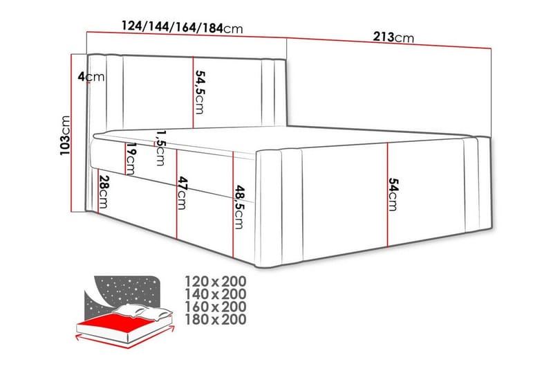 Sängynrunko Betvallen 120x200 cm Tummaroosa