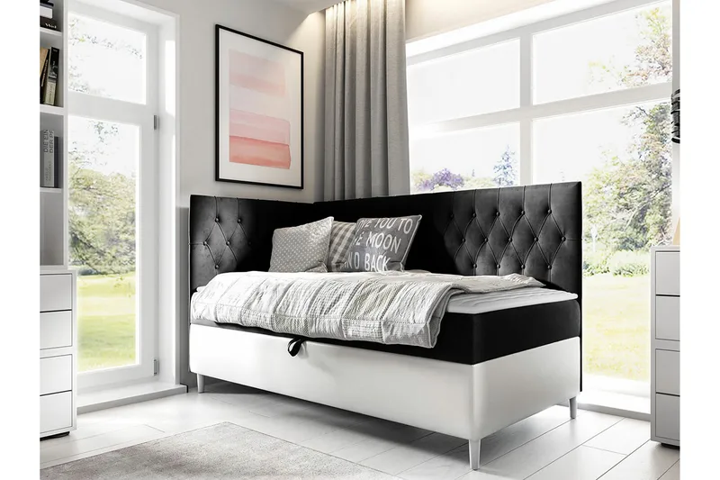 Sängynrunko Boisdale 90x200 cm Musta/Valkoinen