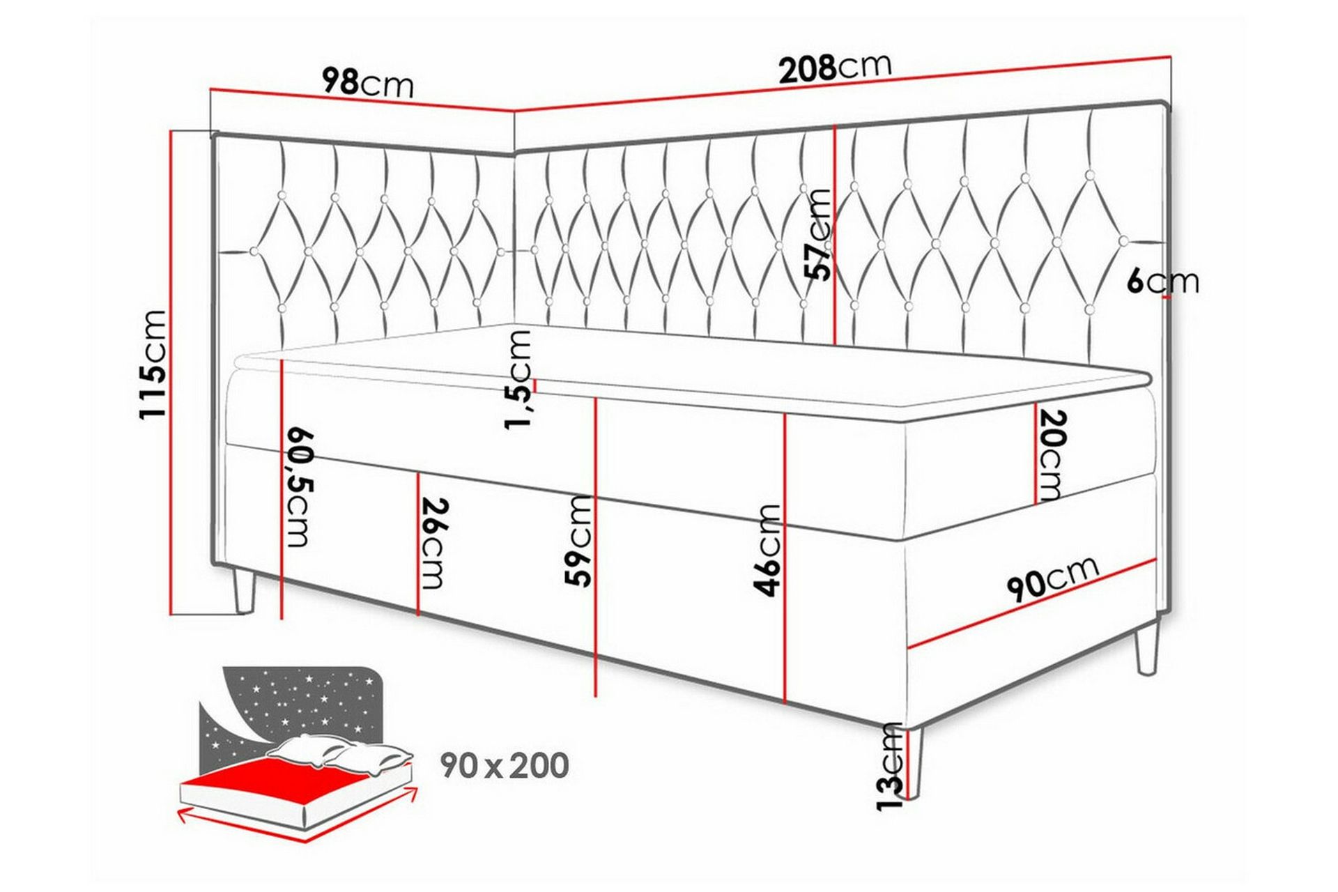 - Vuodekoko: 90x200